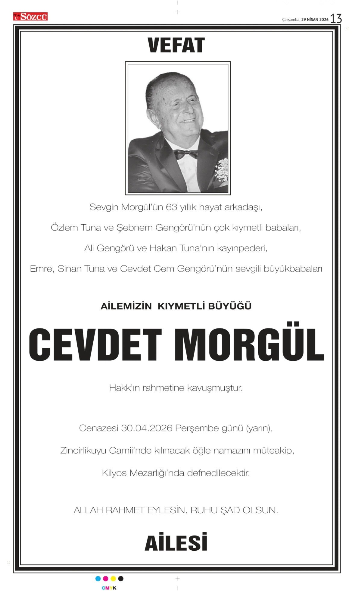 29 Nisan 2026 tarihli Sözcü Gazetesi vefat, başsağlığı ve anma ilanları. İstanbul, Ankara, İzmir ve Adana baskılarında yer alan ilanlar yayınlanmaktadır.