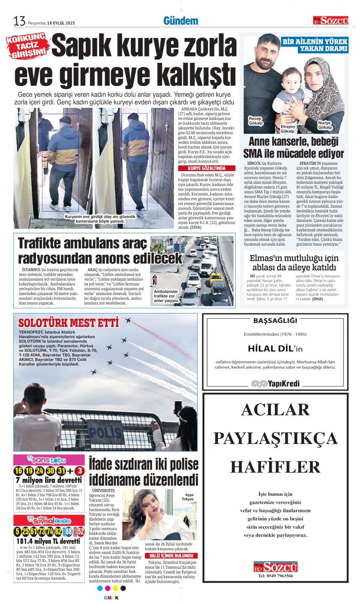 Sözcü Bugünkü Vefat, Başsağlığı, Anma İlanları 18.9.2025;
