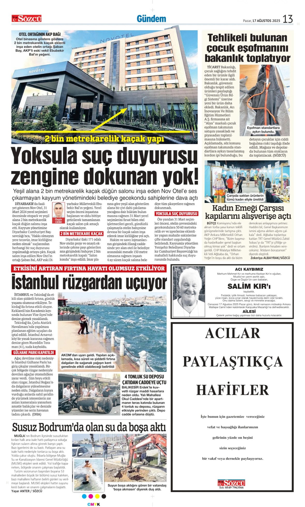 Sözcü Bugünkü Vefat İlanlar 17.8.2025;
