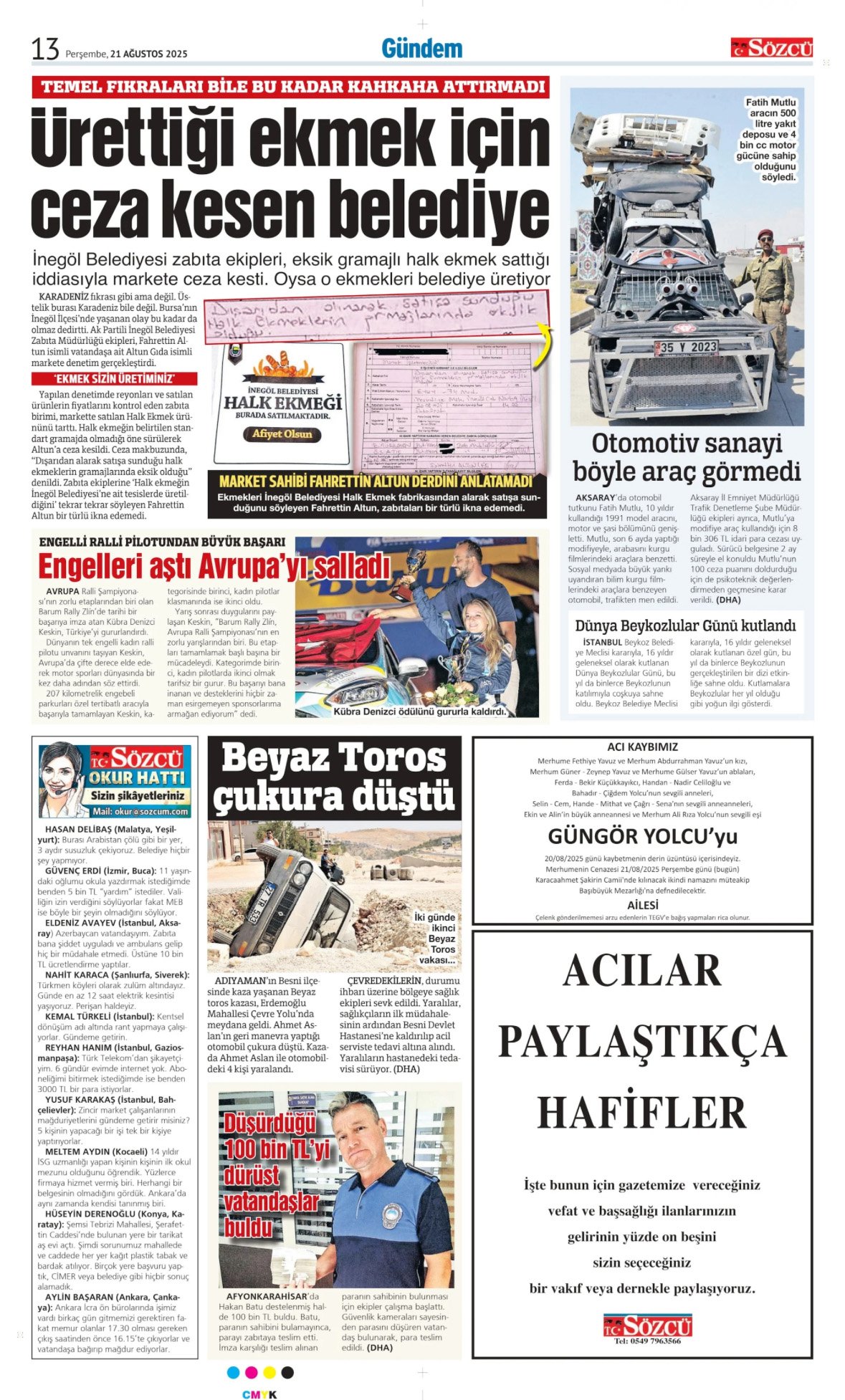 Sözcü Bugünkü Vefat İlanlar 21.8.2025;