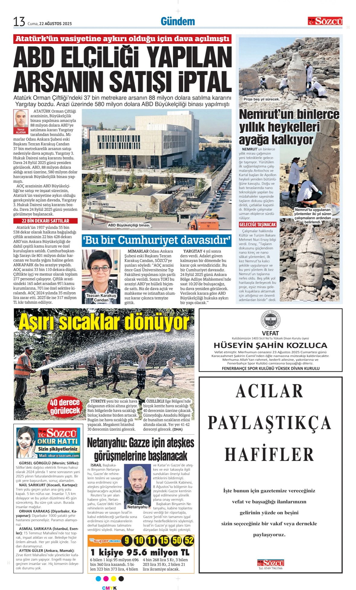 Sözcü Bugünkü Vefat İlanlar 22.8.2025;