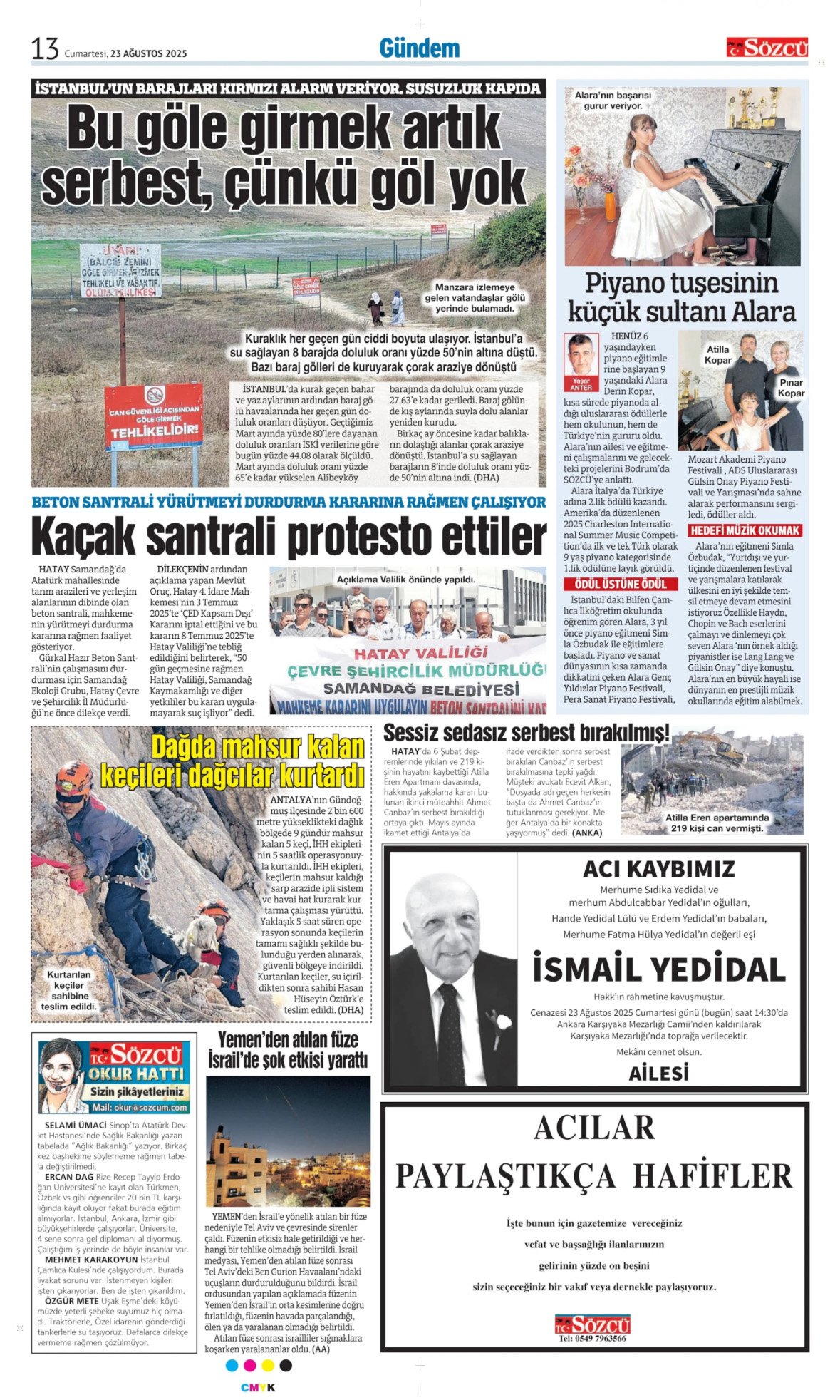 Sözcü Bugünkü Vefat İlanlar 23.8.2025;