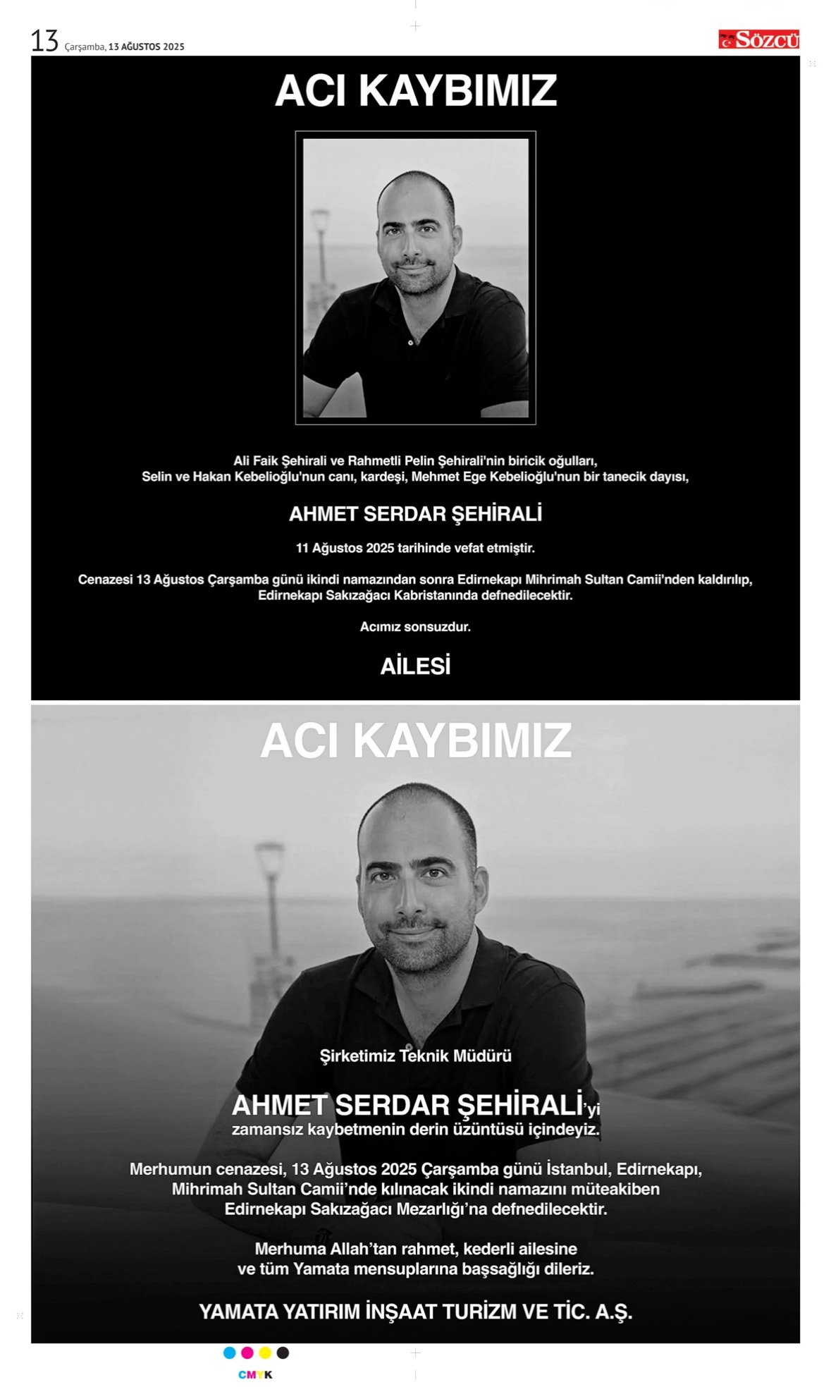 AHMET SERDAR ŞEHİRALİ – VEFAT İLANI,