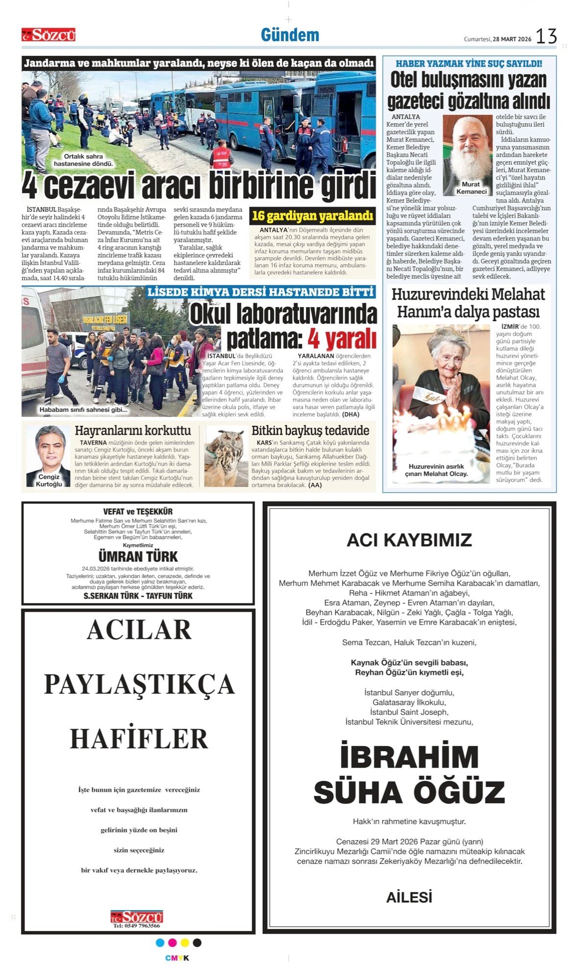 28 Mart 2026 Sözcü Gazetesi vefat, başsağlığı ve anma ilanları. İlan vermek için 0533 504 01 01 numaralı hattı arayın.