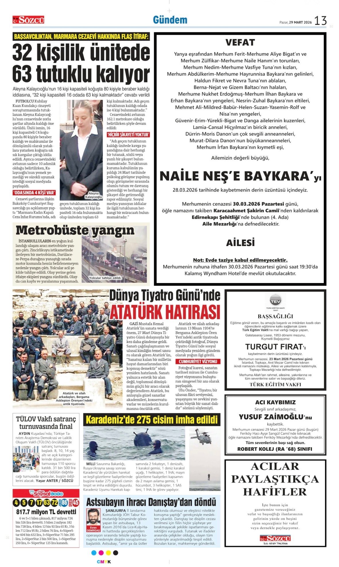 29 Mart 2026 Sözcü Gazetesi vefat, başsağlığı ve anma ilanları. İlan vermek için 0533 504