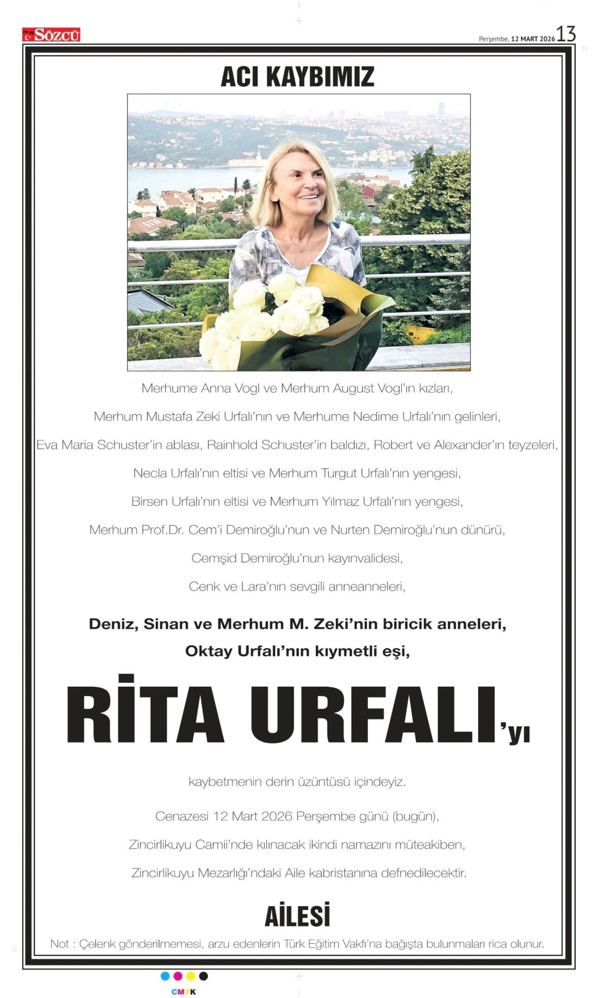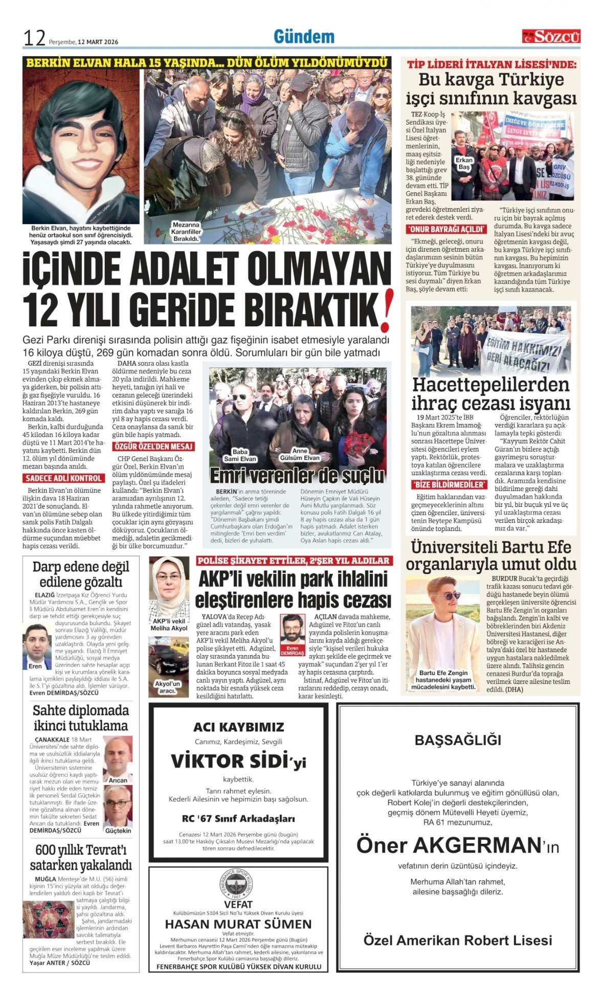 Sözcü Bugünkü Vefat İlan- Başsağlığı İlanı- Anma İlanları ve Arşiv Sayfalar. 12.3.2026