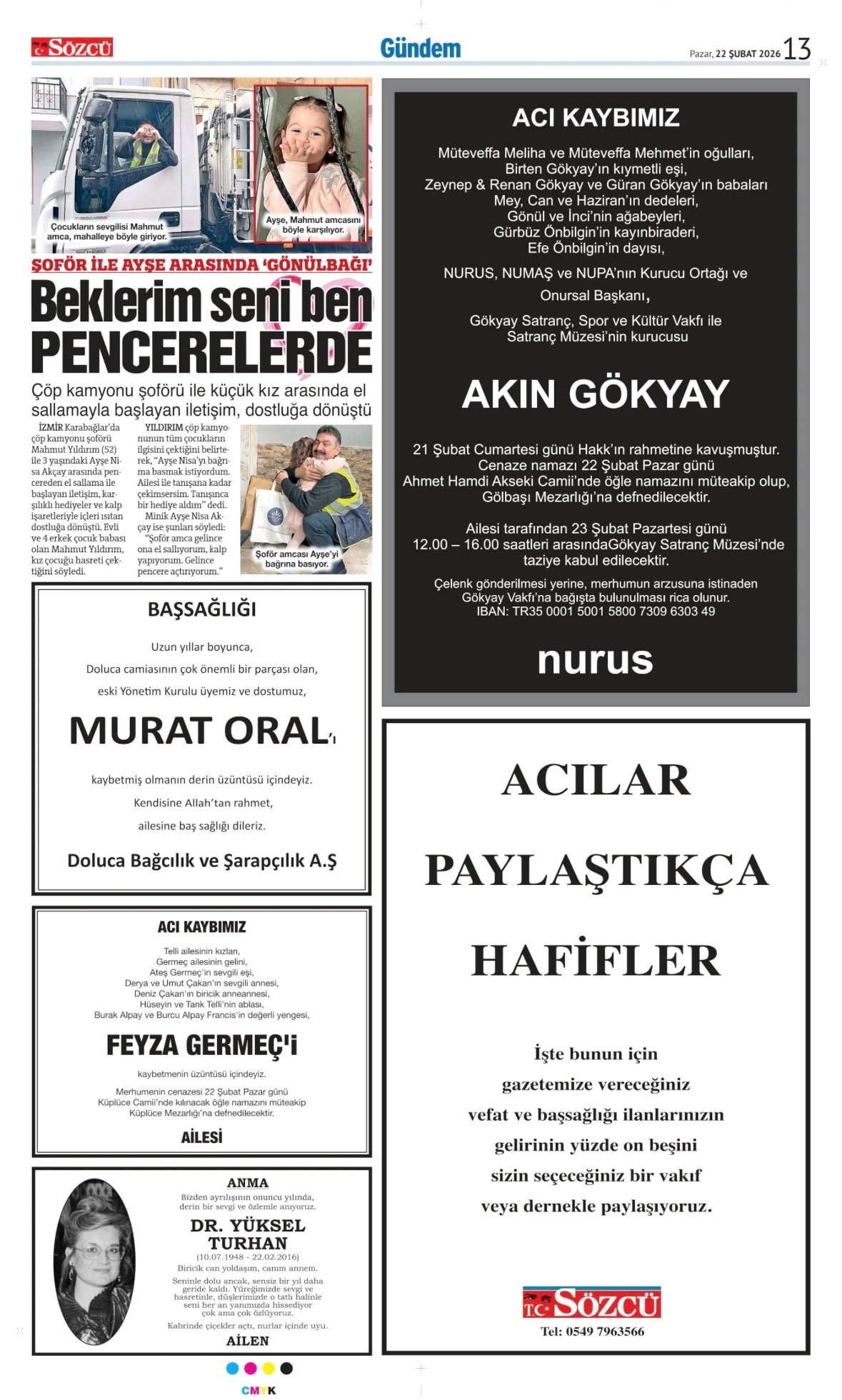 Sözcü Bugünkü Vefat İlan- Başsağlığı İlanı- Anma İlanları ve Arşiv Sayfalar. 22.2.2026