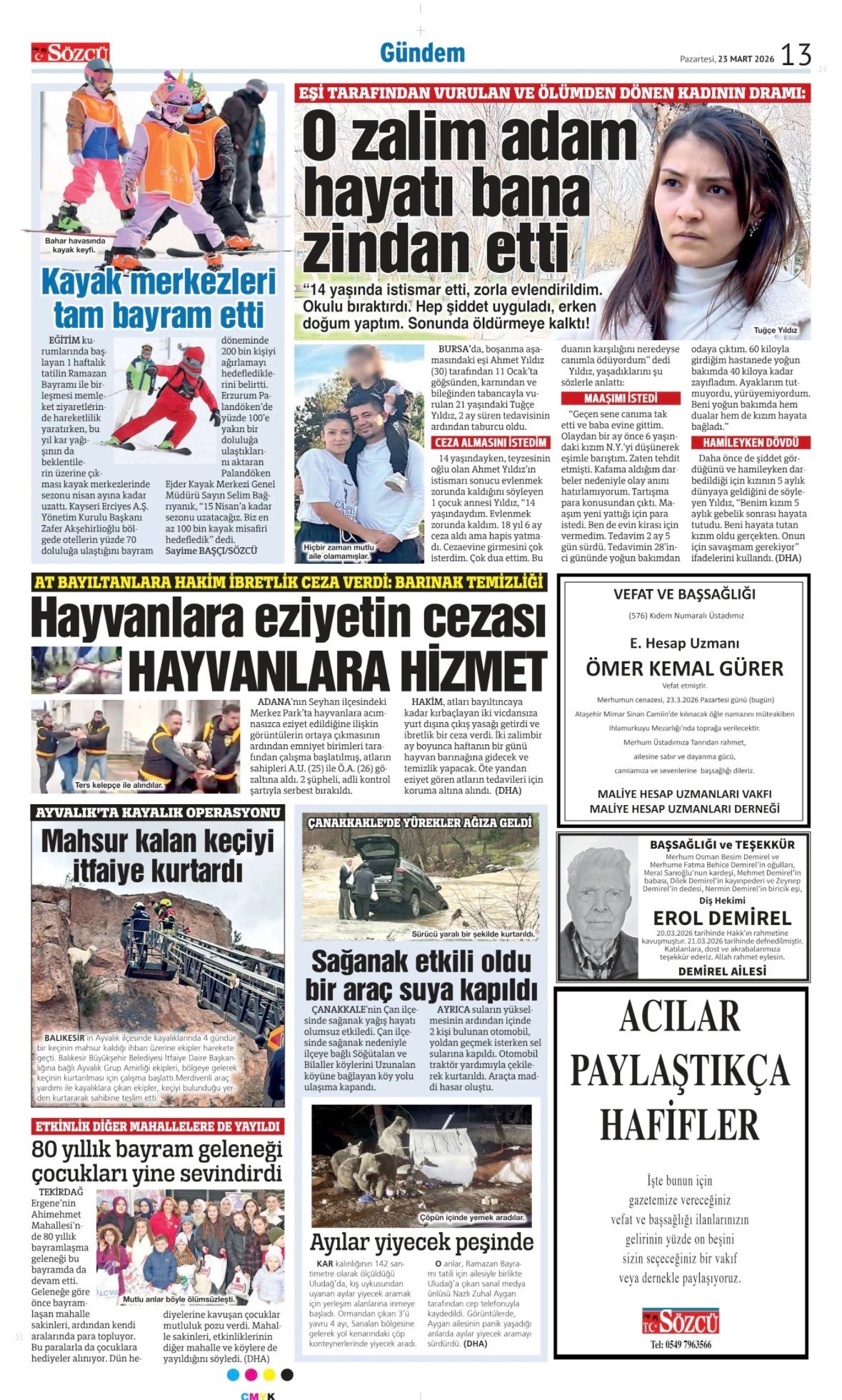 23 Mart 2026 Sözcü Gazetesi vefat, başsağlığı ve anma ilanları. İlan vermek için 0533 504 01 01 numaralı hattı arayın.