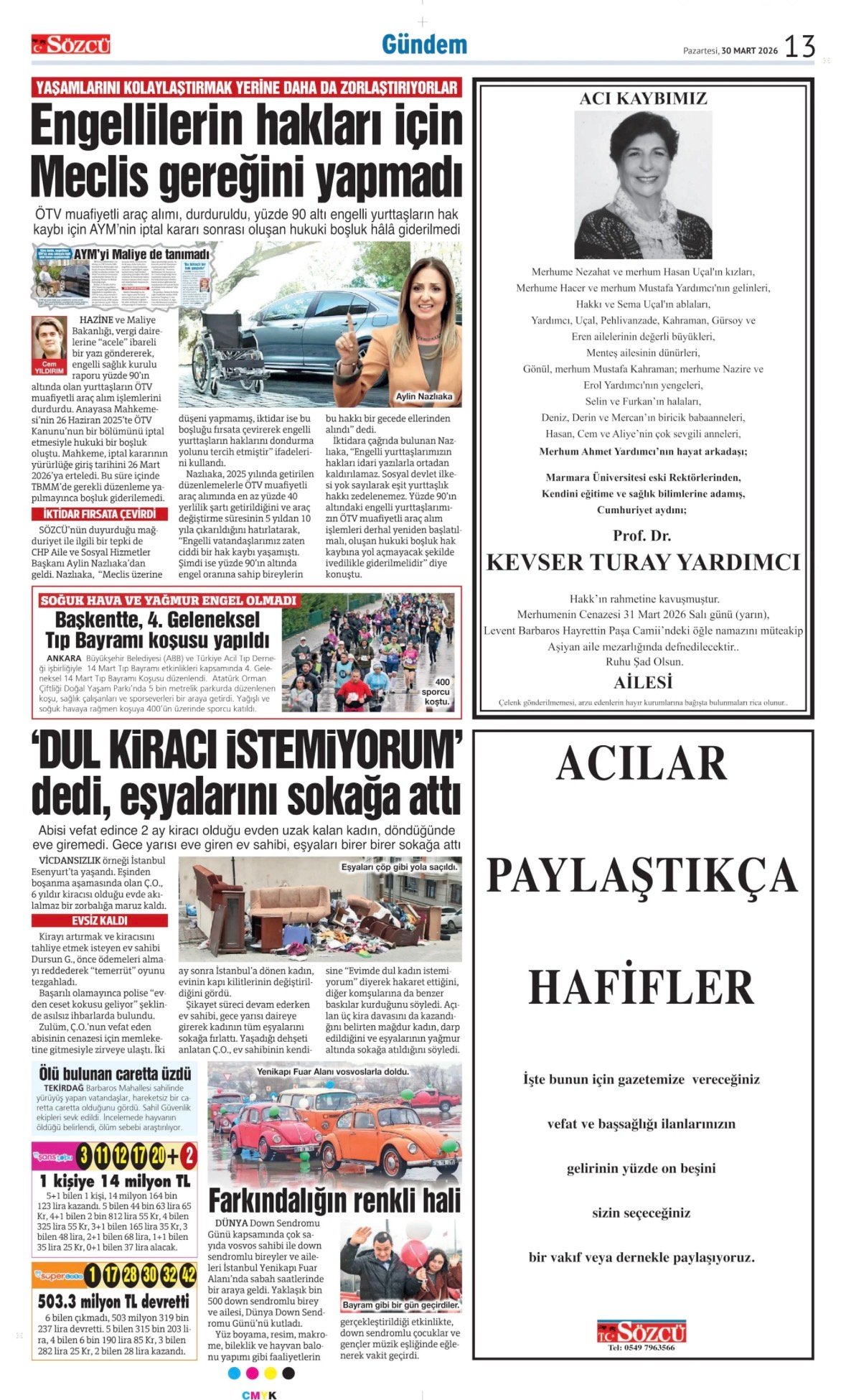 30 Mart 2026 Sözcü Gazetesi vefat, başsağlığı ve anma ilanları. İlan vermek için 0533 504 01 01