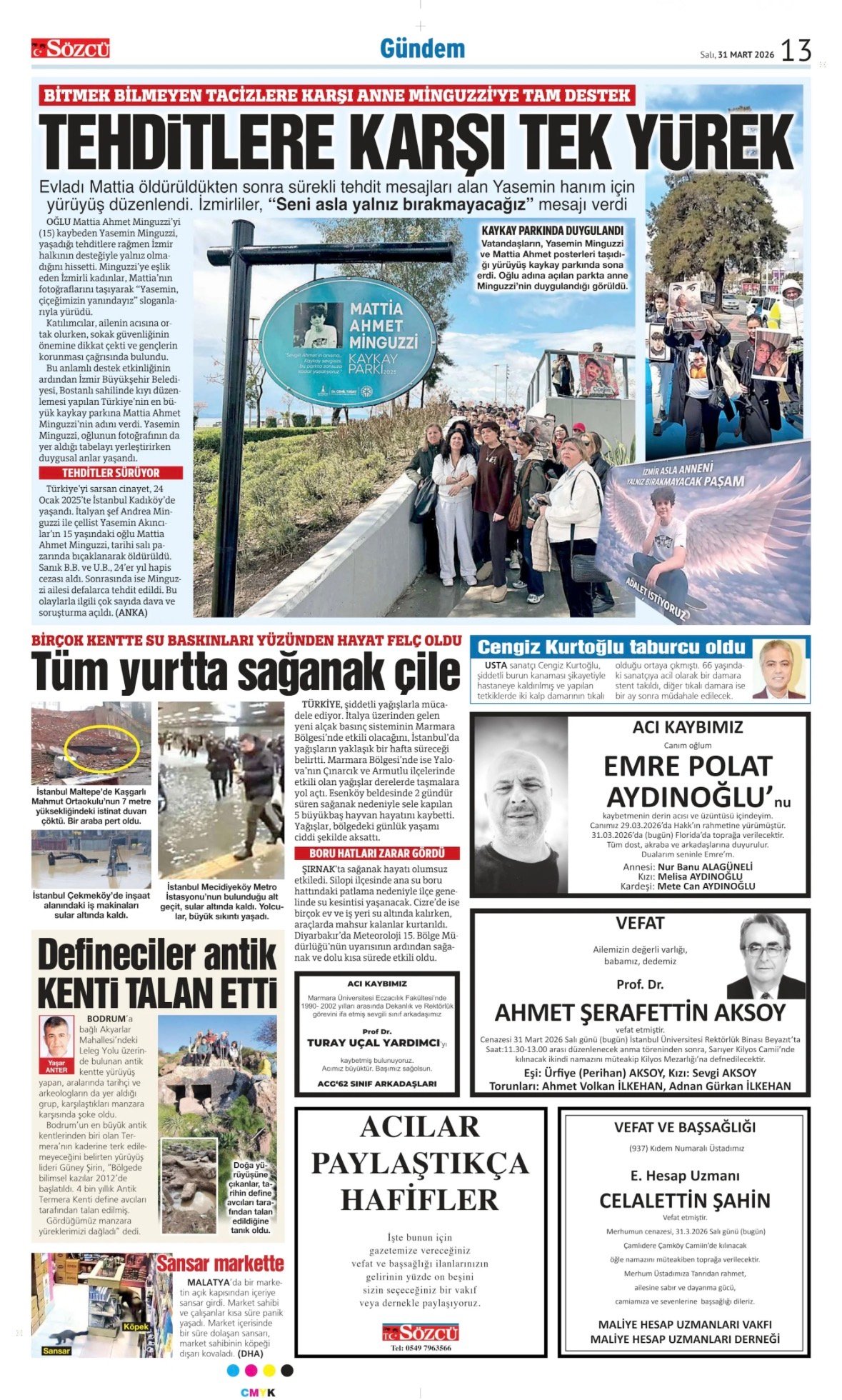 31 Mart 2026 Sözcü Gazetesi vefat, başsağlığı ve anma ilanları.