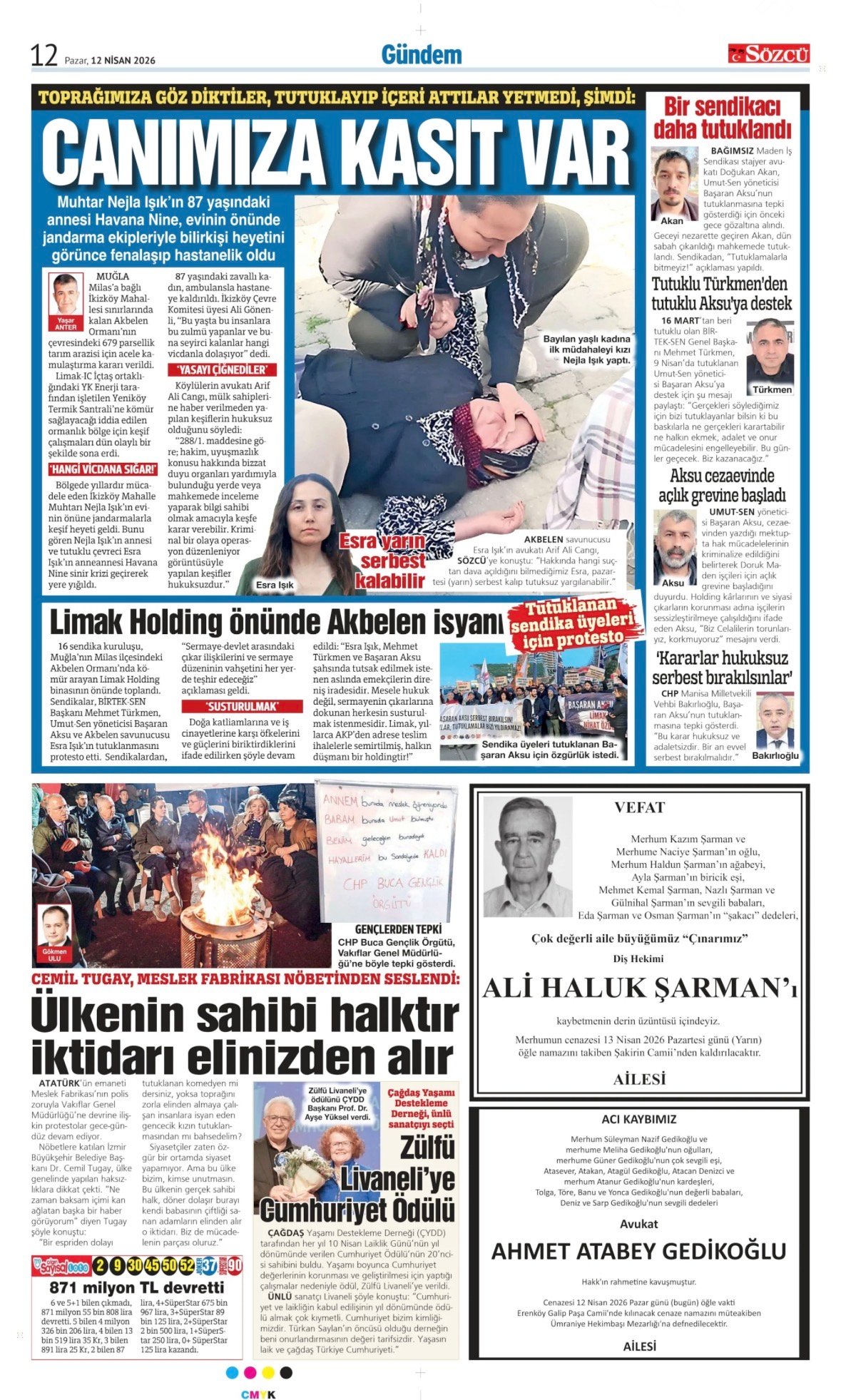 12 Nisan 2026 tarihli Sözcü Gazetesi vefat, başsağlığı ve anma ilanları. İstanbul, Ankara, İzmir ve Adana baskılarında yer alan Read more