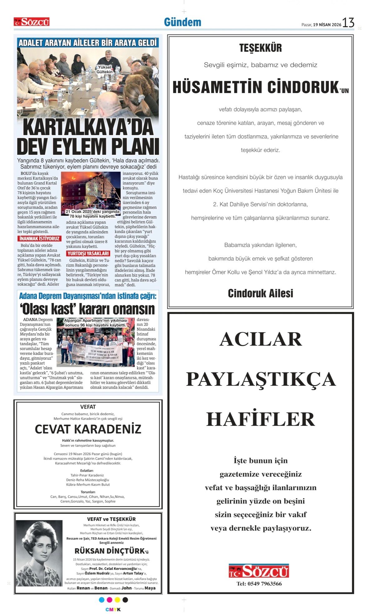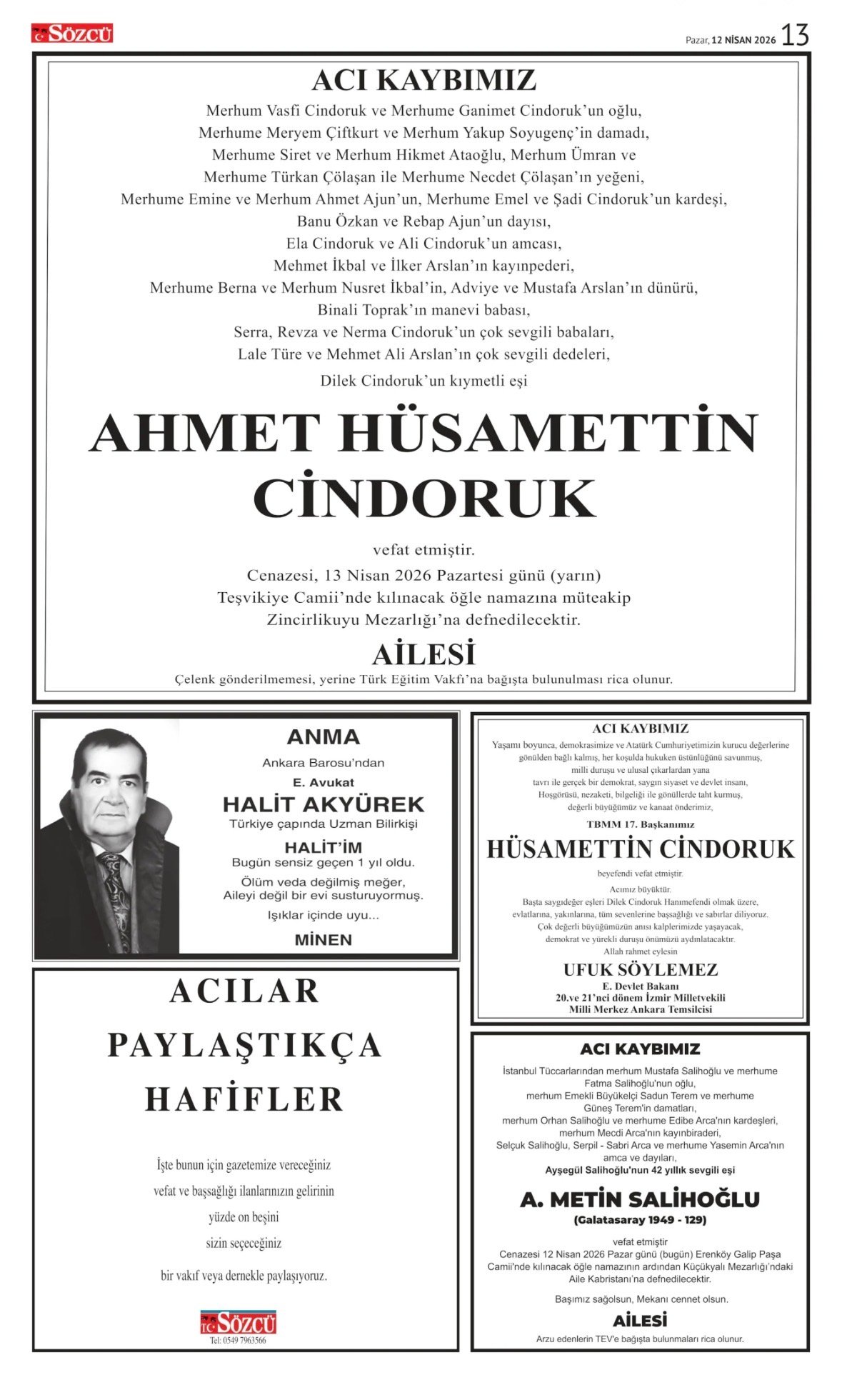 15 Nisan 2026 tarihli Sözcü Gazetesi vefat, başsağlığı ve anma ilanları. İstanbul, Read more