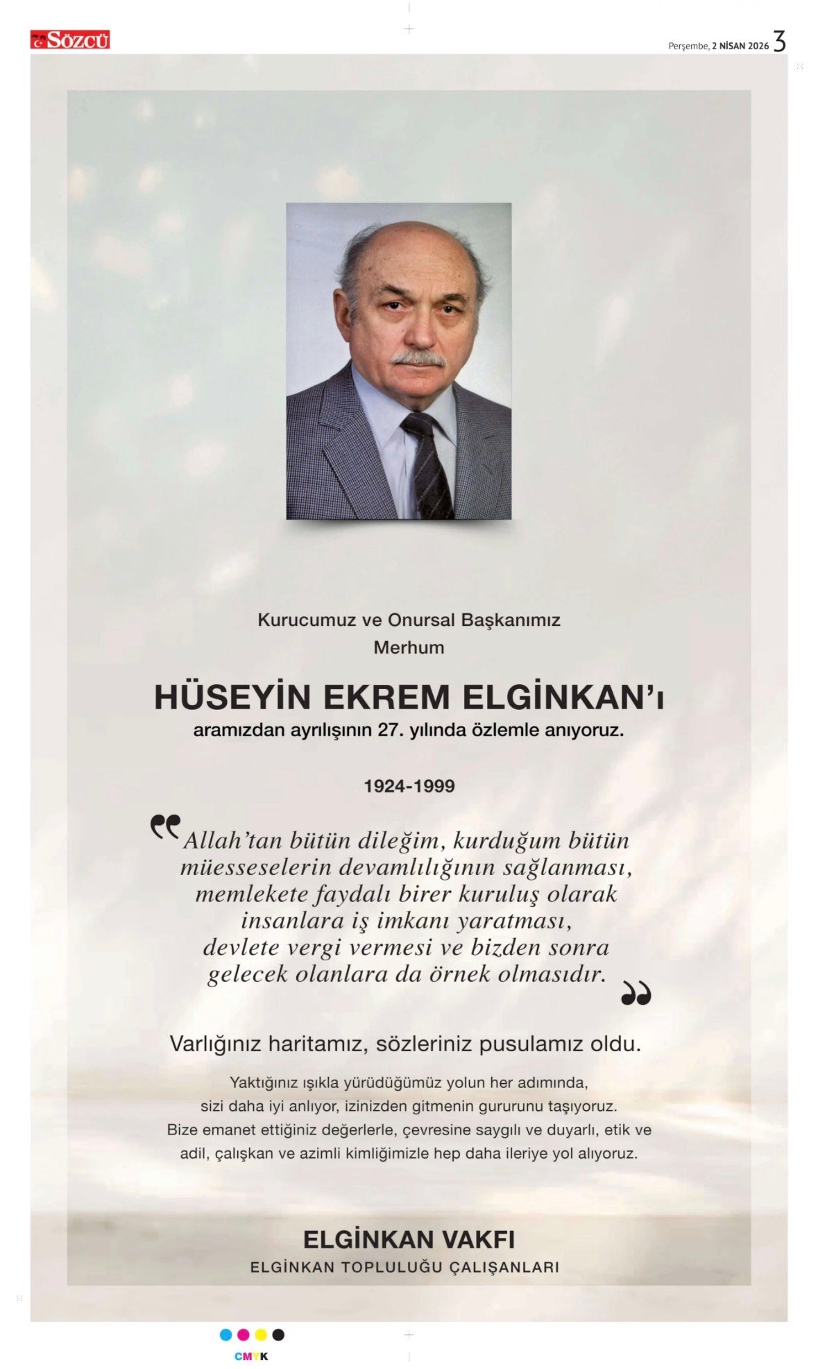 HÜSEYİN EKREM ELGİNKAN- ANMA İLANI,