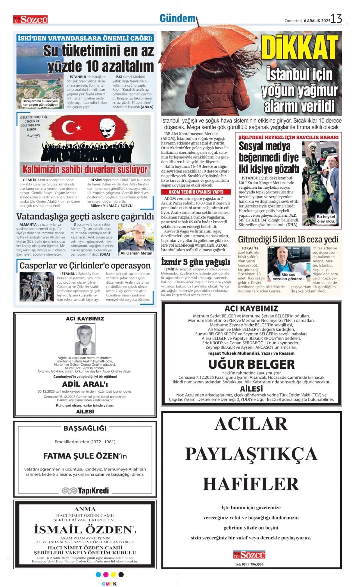 Sözcü Bugünkü Vefat İlan- Başsağlığı İlanı- Anma İlanları ve Arşiv Sayfalar. 27.10.2025