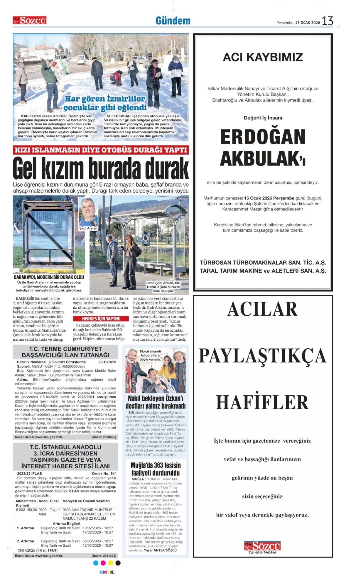 Sözcü Bugünkü Vefat İlan- Başsağlığı İlanı- Anma İlanları ve Arşiv Sayfalar. 15.1.2026