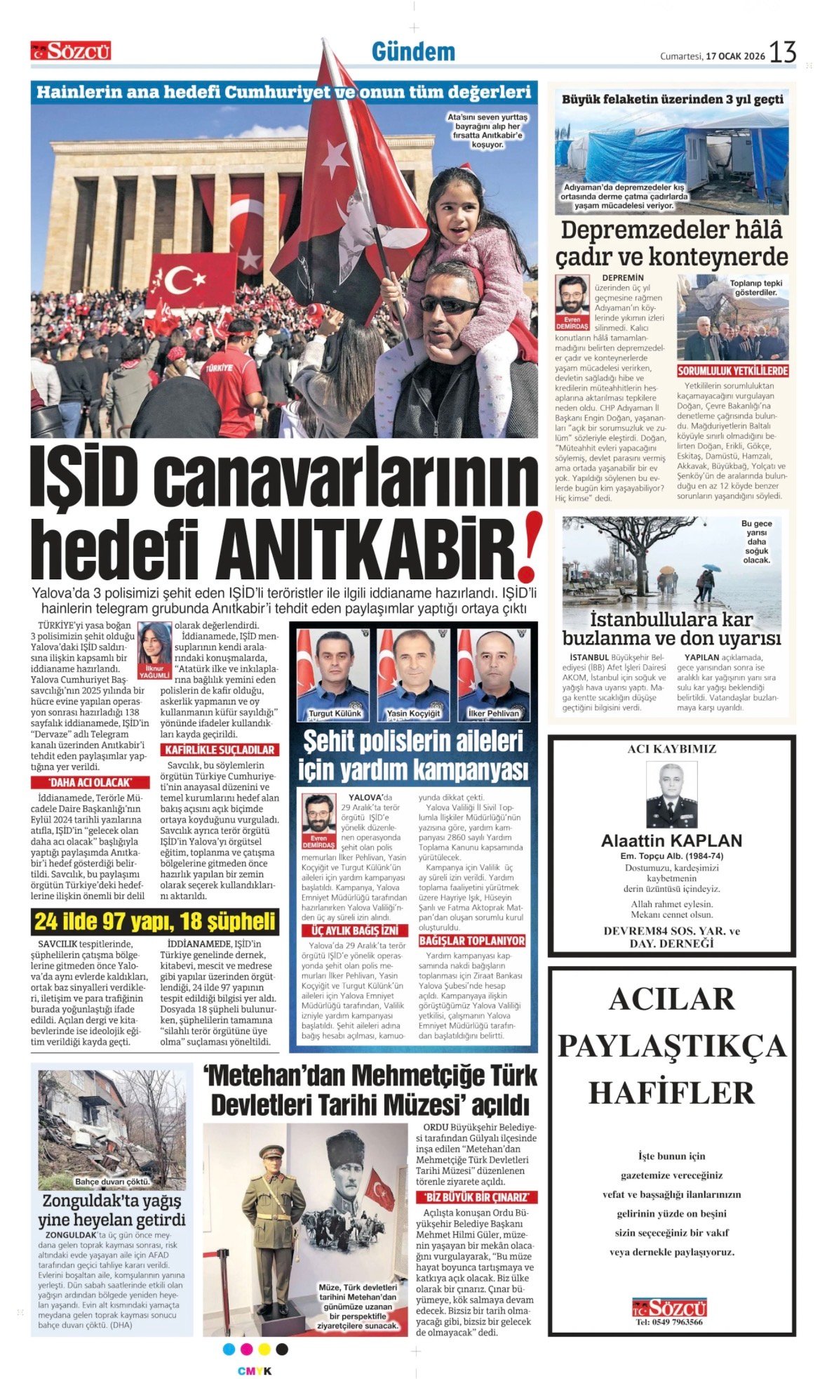 Sözcü Bugünkü Vefat İlan- Başsağlığı İlanı- Anma İlanları ve Arşiv Sayfalar. 17.1.2026