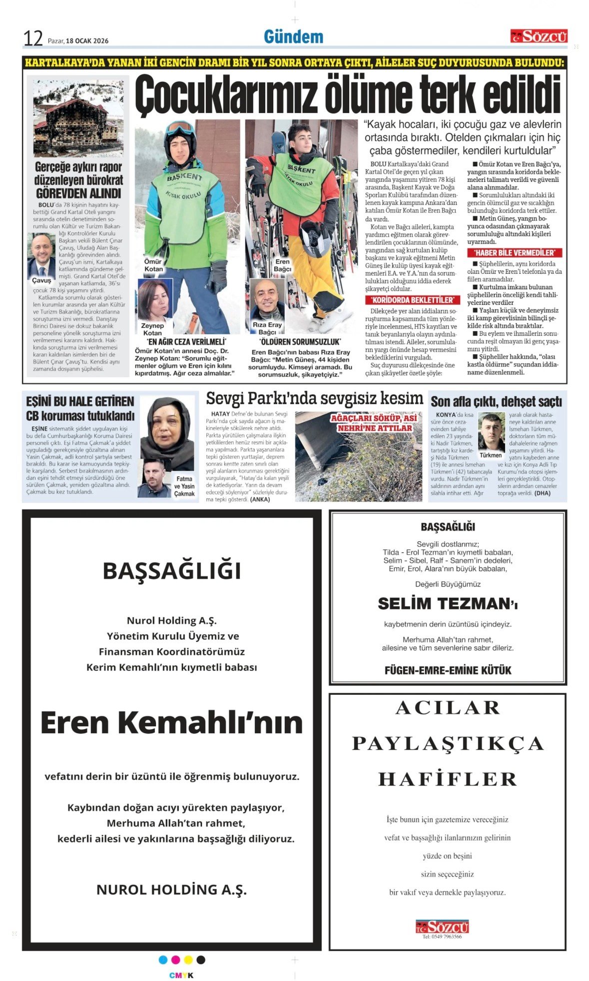 Sözcü Bugünkü Vefat İlan- Başsağlığı İlanı- Anma İlanları ve Arşiv Sayfalar. 12.1.2026