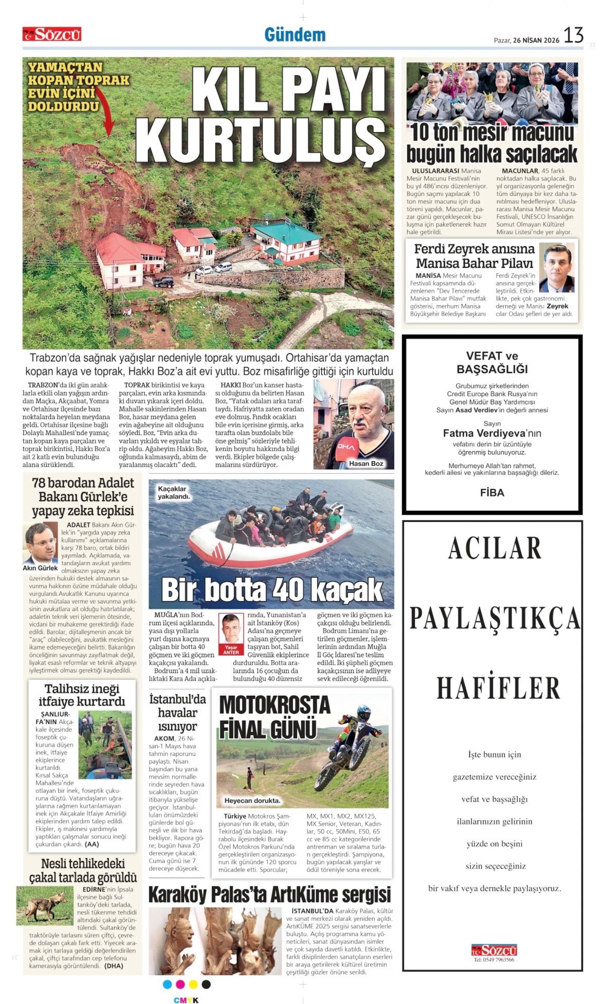 3 Nisan 2026 Sözcü Gazetesi vefat, başsağlığı ve anma ilanları. İlan vermek için